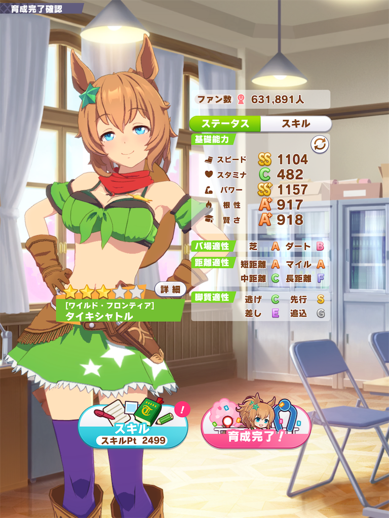 育成終わると大体スキルポイントが2500ぐらいになる