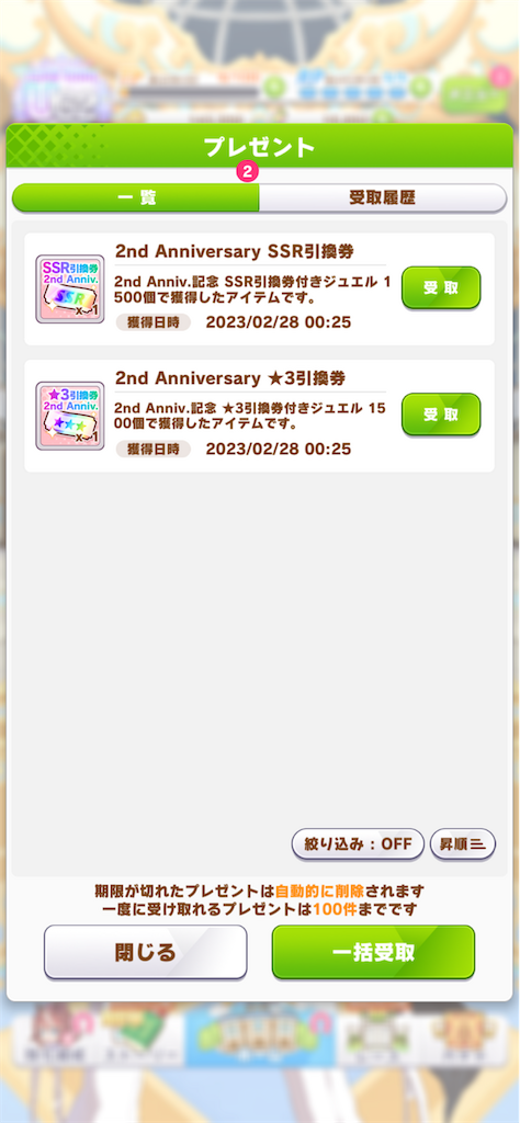 この有償ガチャの期限が2/28 昼までなので今日やってギリギリセーフでした